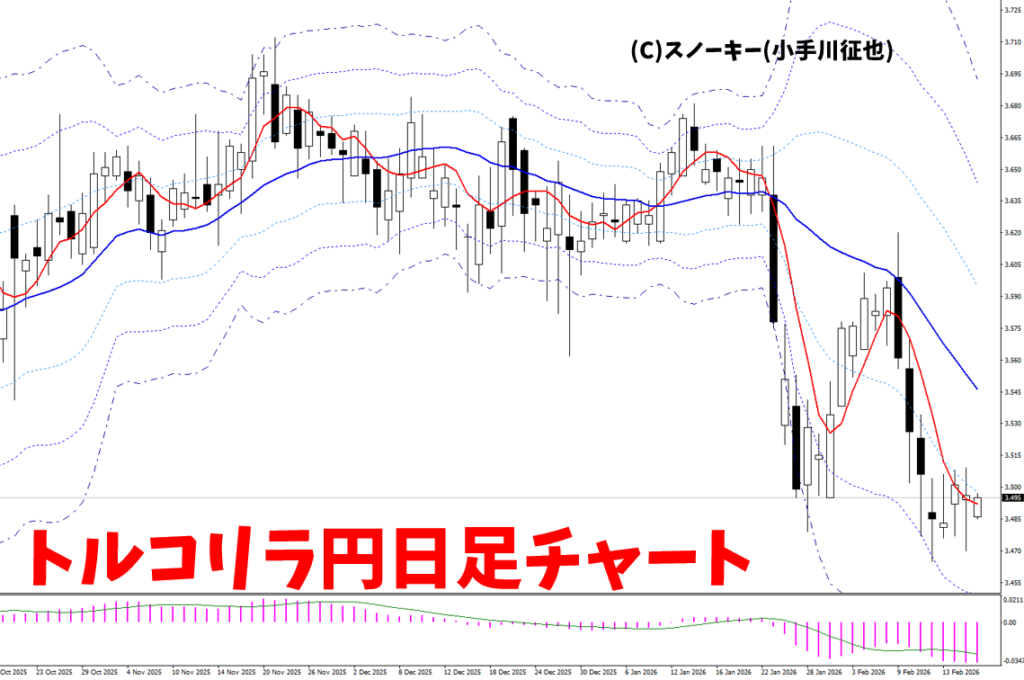 その後、米ドル円が円高方向に振れた影響を受け、トルコリラ円も下落。