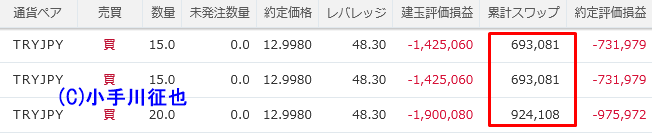 私が元手資金を100万円から300万円に増額してやっているのが、トルコリラ円スワップ投資。