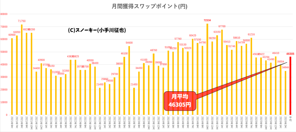 ということは、この約1か月間で積みあげたスワップポイントは34,946円でした。