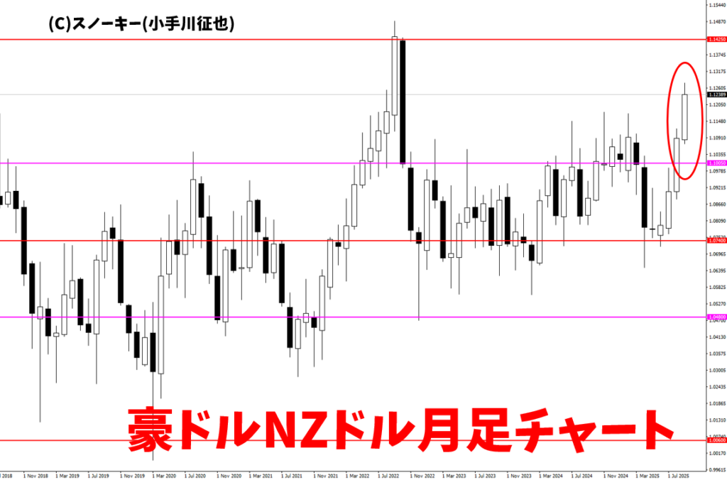 「豪ドルNZドル(オージーキウイ)」の値動きを月足チャートで確認してみましょう。
