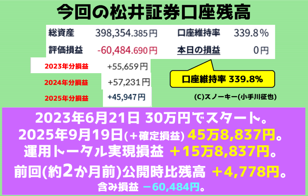 | 2025年9月19日 口座残高 (+確定損益。 含み損益考慮せず) |